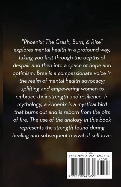 "Phoenix: The Crash, Burn, & Rise" is a collection of poems that explores mental health in a profound way, taking you first through the depths of despair and then into a space of hope and optimism. Bree is a compassionate voice in the realm of mental health advocacy; uplifting and empowering women to embrace their strength and resilience. In mythology, a Phoenix is a mystical bird that burns out and is reborn from the pits of fire. The use of the analogy in this book represents the strength found during healing and subsequent revival of self love. Slowly but surely, day by day, The pain recedes, the hurt goes way. Healing is not a destination, But a journey to self-restoration. And though the path may twist and bend, In the end, you'll always win.
