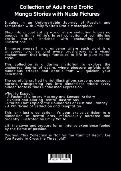 Indulge in an Unforgettable Journey of Passion and Temptation with Emily White's Erotic Masterpiece!Step into a captivating world where seduction knows no bounds in Emily White's latest collection of scintillating erotic stories, enriched with enchanting hentai illustrations. Immerse yourself in a universe where each word is a whispered promise, and every brushstroke is a visual enchantment that brings fantasies to life in pure hentai style.This collection is a daring invitation to explore the uncharted depths of desire, where pleasure unfolds with audacious strokes and details that will quicken your heartbeat. The carefully crafted hentai illustrations serve as sensuous portals, transporting you into dimensions where every hidden fantasy finds unabashed expression.What to Expect:- A Fusion of Literary Mastery and Sensual Artistry- Explicit and Alluring Hentai Illustrations- Stories That Explore the Boundaries of Lust and Fantasy- A Whirlwind of Seduction and TemptationThis isn'tjust a collection; it's your exclusive ticket to a dimension of hentai eros, meticulously narrated and ardently illustrated by Emily White. Lift the cover and prepare for an intense experience fueled by the flame of passion.Caution: This Collection is Not for the Faint of Heart. Are You Ready to Cross the Threshold?