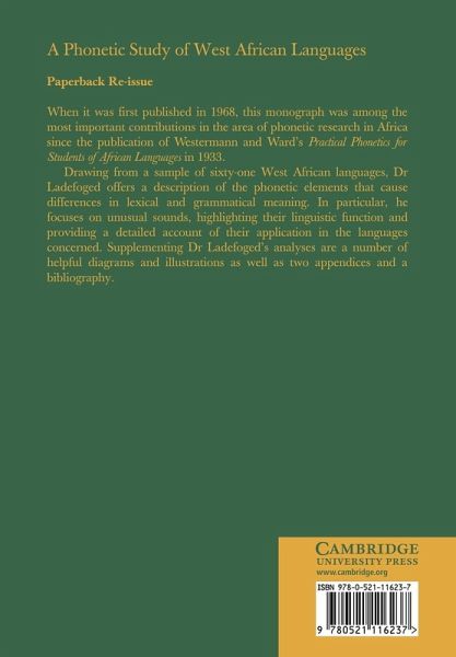 When it was first published in 1968, this monograph was among the most important contributions to the area of phonetic research in Africa since the publication of Westermann and Ward's Practical Phonetics for Students of African Languages in 1933. Drawing from a sample of sixty-one West African languages, Dr Ladefoged offers a description of the phonetic elements that cause differences in lexical and grammatical meaning. In particular, he focuses on unusual sounds, highlighting their linguistic function and providing a detailed account of their application in the languages concerned. Supplementing Dr Ladefoged's analyses are a number of helpful diagrams and illustrations as well as two appendices and a bibliography.