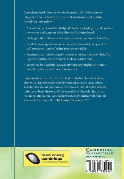 'Engagingly written, this accessible introduction to articulatory phonetics tests the reader's understanding at every stage with a structured series of questions and exercises. The 20 well-balanced units cover basic theory and the essentials of English phonetics, including intonation. Any student new to phonetics will find this a valuable learning aid.' Jill House, University College London
