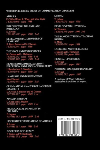 Childhood speech and language disorders from symptom to intervention Phonological Disability in Children: Studies in Disorders of Communication provides a detailed look at the field's current body of knowledge. Covering speech and language disorders as well as their detection, causes, and intervention options, this book provides therapists, teachers, and parents with invaluable insight into a variety of disorders. Topics include childhood apraxia, orofacial myofunctional disorders, stuttering, selective mutism, preschool language disorders, alternative communication, learning disabilities, and more. Suitable for graduate-level study, this book provides a useful resource for anyone working with affected children.