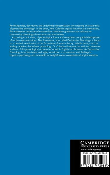 In this book Dr Coleman reviews current theories of the sound-structure of words and syllables, arguing that contemporary theories are unnecessarily complex. He puts forward the use of Declarative Phonology, a simpler but entirely adequate theory. He illustrates his argument with detailed analyses of English and Japanese words and syllables.