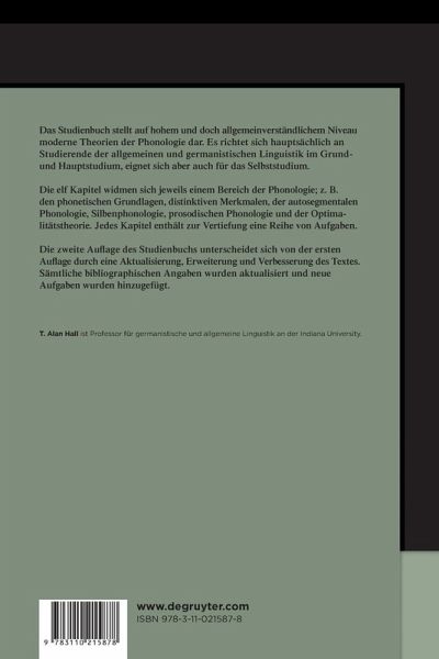 Das Studienbuch stellt auf hohem und doch allgemeinverständlichem Niveau moderne Theorien der Phonologie dar. Es richtet sich hauptsächlich an Studierende der allgemeinen und germanistischen Linguistik im Grund- und Hauptstudium, eignet sich aber auch für das Selbststudium.