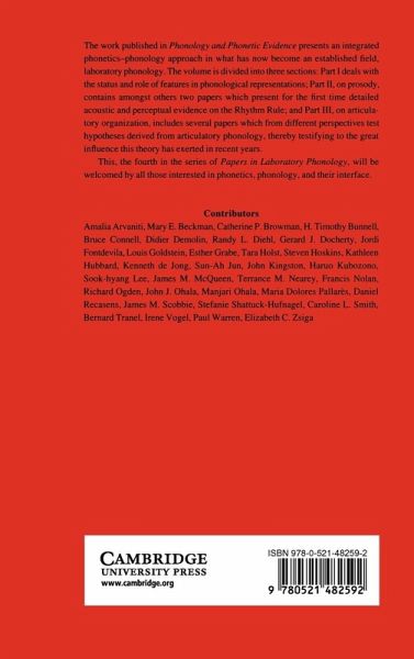 1. Introduction Bruce Connell and Amalia Arvanti; Part I. Features and Perception: 2. Intermediate properties in the perception of distinctive feature values John Kingston and Randy L. Diehl; 3. A double weak view of trading relations: comments on Kingston and Diehl Terrance M. Nearey; 4. Speech perception and lexical representations: the role of vowel nasalization in Hindi and English John J. Ohala and Manjari Ohala; 5. Processing versus representation: comments on Ohala and Ohala James M. McQueen; 6. On the status of redundant features: the case of backing and rounding Kenneth De Jong; 7. The perceptual basis of some sound patterns John J. Ohala; Part II. Prosody: 8. Stress shift: do speakers do it or do listeners hear it? Esther Grabe and Paul Warren; 9. The phonology and phonetics of the rhythm rule Irene Vogel, Timothy Bunnell, and Steven Hoskins; 10. The importance of phonological transcription in empirical approaches to 'stress shift' versus 'early accent': comments on Grabe and Warren, and Vogel, Bunnell and Hoskins Stefanie Shattuck-Hufnagel; 11. Perceptual evidence for the mora in Japanese Haruo Kubozono; 12. On blending and the mora: comments on Kubozono Mary E. Beckman; 13. Toward a theory of phonological and phonetic timing: evidence from Bantu Kathleen Hubbard; 14. On phonetic evidence for the phonological mora: comments on Hubbard Bernard Tranel; Part III. Articulatory Organization: 15. Prosodic patterns in the coordination of vowel and consonant gestures Caroline L. Smith; 16. 'Where' is timing?: comments on Smith Richard Ogden; 17. Asymmetrical prosodic effects on the laryngeal gesture in Korean Sun-Ah Jun; 18. On a gestural account of lenis stop voicing in Korean: comments on Jun Gerard J. Docherty; 19. A production and perceptual account of palatalization Daniel Recasens, Jordi Fontdevilla, and Maria Dolors Palleres; 20. An acoustic and electropalatographic study of lexical and postlexical palatalization in American English Elizabeth C. Zsiga; 21. What do we do when phonology is powerful enough to imitate phonetics: comments on Zsiga James M. Scobbie; 22. The influence of syntactic structure on [s] to [ ] assimilation Tara Holst and Francis Nolan; 23. Assimilation as gestural overlap: comments on Holst and Nolan Catherine P. Browman; 24. Orals, gutturals and the jaw Sook-Hang Lee; 25. The role of the jaw - active or passive?: comments on Lee Francis Nolan; 26. The phonetics and phonology of glottalized consonants in Lendu Didier Demolin; 27. Lendu consonants and the role of overlapping gestures in sound change: comments on Demolin Louis Goldstein; Indexes.