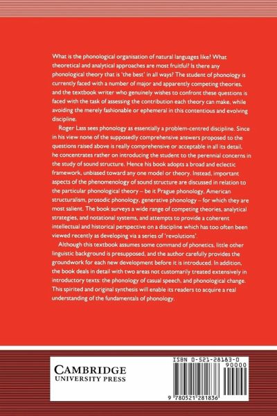 Roger Lass sees phonology as essentially a problem-centred discipline. He concentrates rather on introducing the student to the perennial concerns in the study of sound structure. Hence his book adopts a broad and eclectic framework, unbiased toward any one model or theory.