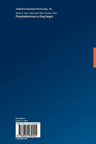 Phosphodiesterase inhibitors: History of pharmacology; PDE inhibitors: factors that influence potency, selectivity and action; A fission yeast-based platform for phosphodiesterase inhibitor high throughput screening and analyses of phosphodiesterase activity; The pharmacokinetics of PDE inhibitors and the impact of this on their efficacy and the therapeutic window; Structural insight into the substrate specificity of phosphodiesterases;The GAF-tandem domain of phosphodiesterase 5 as a potential drug target; Small molecule allosteric modulators of phosphodiesterase 4; PDE 2 holoenzyme-insights about full length PDE and mechanism of activation by cGMP binding; Harnessing the clinical efficacy of phosphodiesterase 4 inhibitors in inflammatory lung diseases with dual-selective phosphodiesterase inhibitors and novel combination therapies; PDE inhibitors in the treatment of inflammatory diseases; Cyclic nucleotides and phosphodiesterases in monocyte differentiation; PDEs as targets for modulating T cell responses; Role of PDEs in adult-onset pulmonary arterial hypertension; Phosphodiesterases: emerging therapeutic targets for neonatal pulmonary hypertension; Phosphodiesterase inhibition in heart failureEvaluation of the Therapeutic Utility of Phosphodiesterase 5A Inhibition in the mdx MouseModel of Duchenne Muscular Dystrophy; PDEs as targets for intermittent claudication;Treatment of erectile dysfunction and lower urinary tract symptoms by phosphodiesteraseinhibitors; Regulation of endothelial barrier function by cyclic nucleotides: the role of phosphodiesterases; Potential use of PDE inhibitors in treatment of depression and improvement of cognition; PDEs as targets for the treatment of basal ganglia disordersTherapeutic potential of PDE inhibitors in parasitic diseases