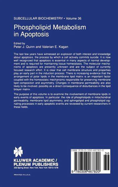 The purpose of this volume is to examine the involvement of membrane lipids in early events of apoptosis. In particular, the role of phospholipids in mitochondrial permeability, membrane lipid asymmetry, and sphingolipid and phospholipid signalling processes in early apoptotic events are reviewed by current researchers in these fields.