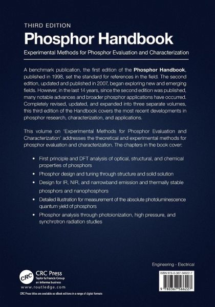 This volume addresses the experimental methods for phosphor evaluation and characterization. New features include the theoretical analysis of optical, structural, and chemical properties of phosphors, phosphor design and tuning through structure and solid solution, phosphor design for biological applications and optical imaging.