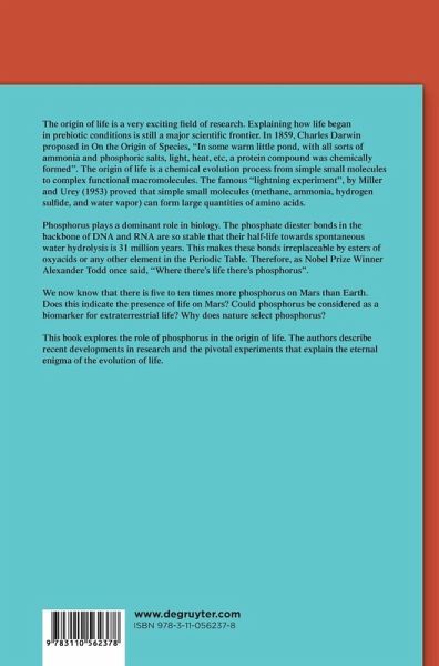 The book is the first thorough study of the role of phosphorus chemistry in the origin of life. This book starts with depiction of the phosphorus role in life creation and evolution. Then it outlines in vital processes how different phosphorus-containing compounds participate as biomarker in life evolution. Written by renowned scientists, it is suitable for researchers and students in organic phosphorus chemistry and biochemistry.