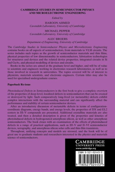 This is the first book to give a complete overview of the properties of deep-level, localized defects in semiconductors. Such comparatively long-lived (or metastable) defects exhibit complex interactions with the surrounding material, and can significantly affect the performance and stability of certain semiconductor devices. After an introductory discussion of metastable defects, the properties of DX and EL2 centres in III-V compounds are presented. Additional crystalline materials are also dealt with, before a detailed description is given of the properties and kinetics of photo-induced defects in amorphous semiconductors. The book closes with an examination of the effects of photo-induced defects in a range of practical applications. Throughout, unifying concepts and models are stressed, and the book will be of great use to graduate students and researchers interested in the physics and materials science of semiconductors.