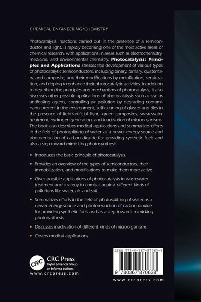 The book discusses developing various types of photocatalytic semiconductors and their modification by metallization, sensitization, and doping to enhance photocatalytic activities. It describes the principles and mechanisms of photocatalysis and other possible applications of photocatalysis such as use as antifouling agents, controlling air pol