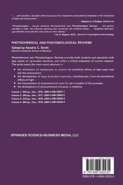The goals of the science of photobiology can be divided into four categories: to develop (I) ways to optimize the beneficial effects of light on man and his environment, (2) methods to protect organisms, including man, from the detrimental effects of light, (3) photochemical tools for use in studies of life processes, and (4) photochemical therapies in medicine. To achieve these goals will require the knowledgeable collaboration of biologists, chemists, engineers, mathematicians, physicians, and physicists; because photobiology is a truly multidisciplinary science. While a multidis ciplinary science is more intellectually demanding, it also has a greater potential for unexpected breakthroughs that can occur when data from several areas of science are integrated into new concepts for theoretical or practical use. Photochemical and Photobiological Reviews continues to provide in depth coverage of the many specialty areas of photobiology. It is hoped that these reviews will provide an important service to the younger scientists in the field and to senior scientists in related fields, because they provide a ready access to the recent literature in the field, and more importantly, they frequently offer a critical evaluation of the direction that the field is taking, or suggest a redirection when appropriate. Since it is important that this review series remain responsive to the needs of photochemists and photobiologists, the Editor would value com ments and suggestions from its readers.
