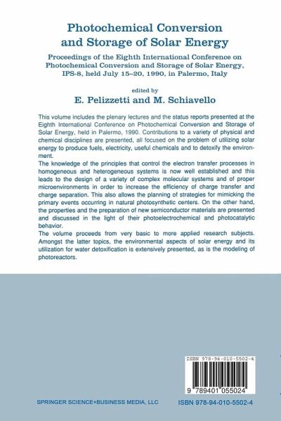 Proceedings of the Eighth International Conference on Photochemical Conversion and Storage of Solar Energy, IPS-8, held July 15-20, 1990, in Palermo, Italy Herausgegeben:Schiavello, Mario; Pelizzetti, Ezio