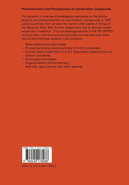 The "Seventh International Symposium on the Photochemistry and Photo physics of Coordination Compounds" was held in the charming Schlo~ Elmau lying in a hidden valley of the Bavarian Alps above Garmisch Partenkirchen, Federal Republic of Germany, from March 29 to April 2, 1987. About ninety participants from seventeen countries including about thirty non-European scientists as far away as Japan and Australia came together for this symposium. Forty-five oral and twenty-five poster contributions were presented. These presentations and the opportunity for many formal and informal discussions stimulated an intense scienti fic interaction between the participants. This meeting followed previous symposia held in Muhlheim 1974 (Koerner von Gustorf), Ferrara 1976 (Carassiti, Scandola), Koln 1978 (Wasgestian), Montreal 1980 (Serpone), Paris 1982 (Gianotti) and London 1984 (Harriman). The main fields covered by this 7th Symposium were photo-redox processes, organometallic photochemistry, and properties of metal centered excited states. Furthermore, special complexes such as 2+ [Ru(bpy)3] and related compounds as well as Cr(III)-complexes were discussed extensively. Moreover, a series of potential applications such as solar energy conversion and storage (e.g. water splitting) and photoresist technology were important subjects of this meeting. Thus, it was shown again that the rapidly expanding field of excited-state chemistry and physics of coordination compounds has become an important part of inorganic chemistry.