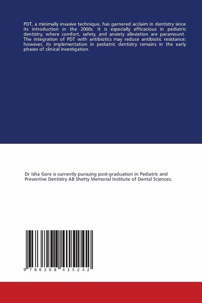 PDT, a minimally invasive technique, has garnered acclaim in dentistry since its introduction in the 2000s. It is especially efficacious in pediatric dentistry, where comfort, safety, and anxiety alleviation are paramount. The integration of PDT with antibiotics may reduce antibiotic resistance; however, its implementation in pediatric dentistry remains in the early phases of clinical investigation.