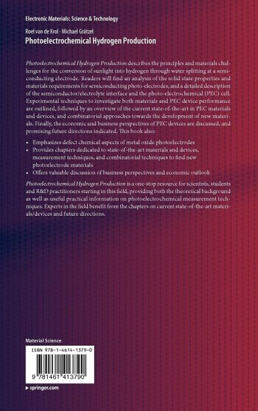 Photoelectrochemical Hydrogen Production describes the principles and materials challenges for the conversion of sunlight into hydrogen through water splitting at a semiconducting electrode. Readers will find an analysis of the solid state properties and materials requirements for semiconducting photo-electrodes, a detailed description of the semiconductor/electrolyte interface, in addition to the photo-electrochemical (PEC) cell. Experimental techniques to investigate both materials and PEC device performance are outlined, followed by an overview of the current state-of-the-art in PEC materials and devices, and combinatorial approaches towards the development of new materials. Finally, the economic and business perspectives of PEC devices are discussed, and promising future directions indicated.