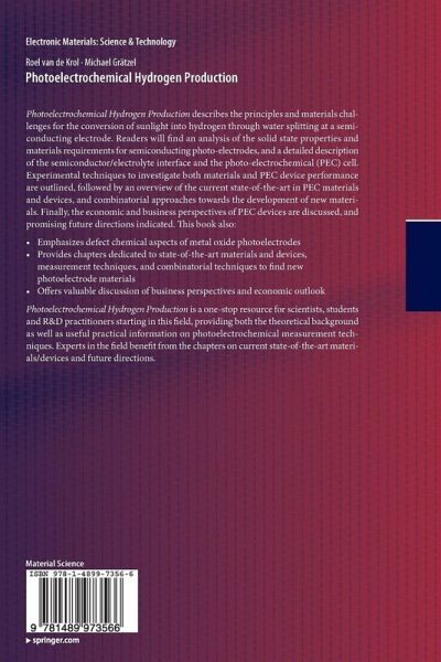 Photoelectrochemical Hydrogen Production describes the principles and materials challenges for the conversion of sunlight into hydrogen through water splitting at a semiconducting electrode. Readers will find an analysis of the solid state properties and materials requirements for semiconducting photo-electrodes, a detailed description of the semiconductor/electrolyte interface, in addition to the photo-electrochemical (PEC) cell. Experimental techniques to investigate both materials and PEC device performance are outlined, followed by an overview of the current state-of-the-art in PEC materials and devices, and combinatorial approaches towards the development of new materials. Finally, the economic and business perspectives of PEC devices are discussed, and promising future directions indicated.