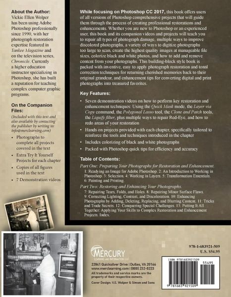 "Users of Photoshop CC 2017 receive a fine manual on how to create professional restorations and enhancements in a manual that accompanies seven demo videos on how to apply these techniques. Real-world projects in every chapters are geared towards linking the tools and techniques to common best practices and restoration approaches, while tips range from colorizing black and white photos to repairing common flaws, working with layers, correcting discoloration and contrast, and more. The details are enhanced by color examples and Photoshop screen shots throughout, which leave nothing to wonder in a powerful survey that requires only a basic foundation in Photoshop features to prove accessible."