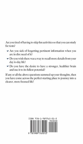 Does your memory constantly fail you? Learn proven memory improvement hacks today! Recent studies show that a vast majority of people live with the inability to recall accurately. Failing memory can be quite consequential, whether while taking a school test, promotional test or delivering a vital lecture, it projects an image of incompetence which is often wrong. Following the right steps can unlock the key to fully recalling images from your memory. If you want to break the memory loss circle, then you must be willing to dedicate yourself to a set of simple instructions and tricks that will teach you how to control your mind, this book is key. In this book you will learn: Simple but effective tricks to improve memory recall A key food that can help memory improvement Essential techniques to revise and memorize quickly for exams An amazing strategy to recall little details Practical ways to build a photographic memory No matter how bad you think your memory recall is, with some practical strategies and implementation of some tips, you are sure to obtain visible improvements. Would You Like To Know More? Download now and start the steps to have an incredible memory Scroll to the top of the page and select the buy now button.