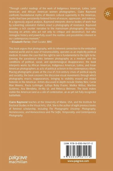 This book argues that photography, with its inherent connection to the embodied material world and its ease of transmissibility, operates as an implicitly political medium. It makes the case that the right to see is fundamental to the right to be. Limning the paradoxical links between photography as a medium and the conditions of political, social, and epistemological disappearance, the book interprets works by African American, Indigenous American, Latinx, and Asian American photographers as acts of political activism in the contemporary idiom. Placing photographic praxis at the crux of 21st-century crises of political equity and sociality, the book uncovers the discursive visual movements through which photography enacts reappearances, bringing to visibility erased and elided histories in the Americas. Artists discussed in-depth include Shelley Niro, Carrie Mae Weems, Paula Luttringer, LaToya Ruby Frazier, Matika Wilbur, Martine Gutiérrez, Ana Mendieta, An-My Lê, and Rebecca Belmore. The book makes visible the American land as a site of contestation, an as-yet not fully recognized battlefield.
