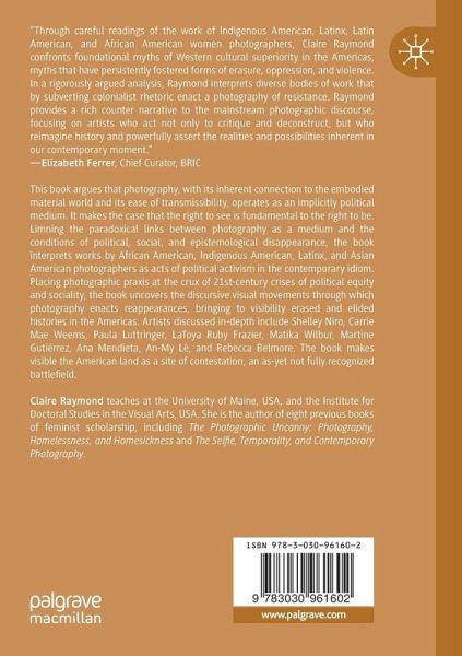 This book argues that photography, with its inherent connection to the embodied material world and its ease of transmissibility, operates as an implicitly political medium. It makes the case that the right to see is fundamental to the right to be. Limning the paradoxical links between photography as a medium and the conditions of political, social, and epistemological disappearance, the book interprets works by African American, Indigenous American, Latinx, and Asian American photographers as acts of political activism in the contemporary idiom. Placing photographic praxis at the crux of 21st-century crises of political equity and sociality, the book uncovers the discursive visual movements through which photography enacts reappearances, bringing to visibility erased and elided histories in the Americas. Artists discussed in-depth include Shelley Niro, Carrie Mae Weems, Paula Luttringer, LaToya Ruby Frazier, Matika Wilbur, Martine Gutiérrez, Ana Mendieta, An-My Lê, and Rebecca Belmore. The book makes visible the American land as a site of contestation, an as-yet not fully recognized battlefield.