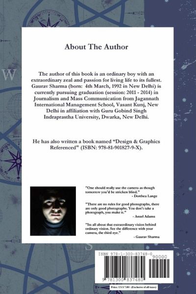 This book demonstrate and demystifies each and every aspect of photography. It is very clear and simple in its language and covers each and every concept related to photography such as photojournalism, photo manipulation, lens care, role of photography, importance of photography, types of photography, evolution and development in photography, photography as a career, future perspectives and scopes of photography. Also the very last chapter of the book, 'Xtraa Shots' is a must read for every photography aspirant as it reveals the bitter but true practical facts about photography as a career.