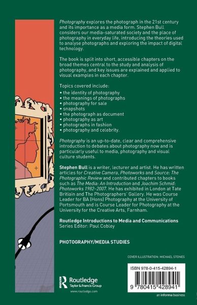 Stephen Bull is a writer, lecturer and artist. He is Course Leader for BA (Hons) Photography at the University of the Creative Arts, Farnham. He has written articles for Creative Camera, Photoworks and Source and contributed chapters to books such as The Media: An Introduction and Joachim Schmid: Photoworks 1982-2007.