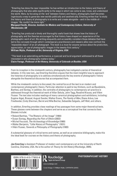 'Jae Emerling has done the near impossible: he has written an introduction to the history and theory of photography that also adds significantly to the ways in which we come to see, know, and understand the world. Here, by focusing on the 'and' between history and theory, photography itself becomes ingeniously a form of thinking. Photography is history, is theory, is technology, is archive, is document, is truth, is time, is knowledge, is a way to generate new worlds politically and aesthetically. Emerling writes that 'to study the history and theory of photography is to write and create alongside-and in the middle of-images.' He couldn't be more right.' - Marquard Smith, Director, Institute for Modern and Contemporary Culture, University of Westminster, UK