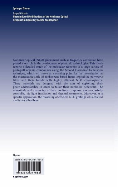 Nonlinear optical (NLO) phenomena such as frequency conversion have played a key role in the development of photonic technologies. This thesis reports a detailed study of the molecular response of a large variety of push-pull organic compounds using the Second Harmonic Generation technique, which will serve as a starting point for the investigation at the macroscopic scale of azobenzene-based liquid crystalline polymeric films and their blends with highly efficient NLO chromophores. These materials are designed with the aim of exploiting their photoadressability in order to tailor their…mehr