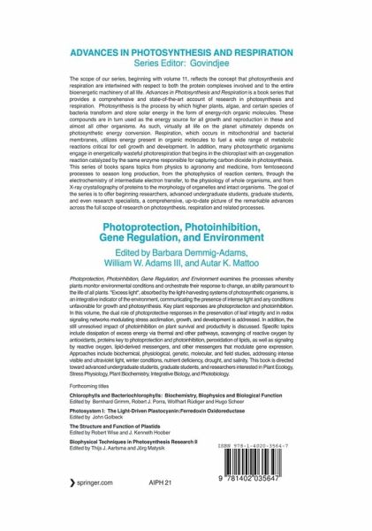 Photoprotection, Photoinhibition, Gene Regulation, and Environment examines the processes whereby plants monitor environmental conditions and orchestrate their response to change, an ability paramount to the life of all plants. "Excess light", absorbed by the light-harvesting systems of photosynthetic organisms, is an integrative indicator of the environment, communicating the presence of intense light and any conditions unfavorable for growth and photosynthesis. Key plant responses are photoprotection and photoinhibition. In this volume, the dual role of photoprotective responses in the preservation of leaf integrity and in redox signaling networks modulating stress acclimation, growth, and development is addressed. In addition, the still unresolved impact of photoinhibition on plant survival and productivity is discussed. Specific topics include dissipation of excess energy via thermal and other pathways, scavenging of reactive oxygen by antioxidants, proteins key to photoprotection and photoinhibition, peroxidation of lipids, as well as signaling by reactive oxygen, lipid-derived messengers, and other messengers that modulate gene expression. Approaches include biochemical, physiological, genetic, molecular, and field studies, addressing intense visible and ultraviolet light, winter conditions, nutrient deficiency, drought, and salinity.
