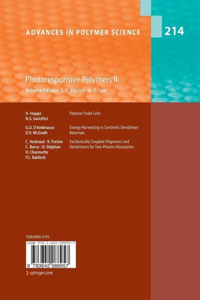 Over the past 25 years or so there has been a revolution in the devel- mentoffunctionalpolymers. Whilemanypolymersascommoditiesrepresent huge markets, new materials with a high degree of functionality have been developed. Such specialty polymers play important roles in our day-to-day lives. The current volumes 213 and 214 of Advances in Polymer Science focus on photoresponsive polymers. In particular polymers that can either change the properties of a beam of light that passes through them or who change their properties in response to light. Volume 213 starts with an introd- tion to two-photon…mehr