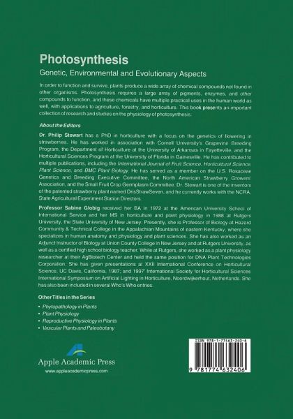 Dr. Philip Stewart has a PhD in horticulture with a focus on the genetics of flowering in strawberries. He has worked in association with Cornell University's Grapevine Breeding Program, the Department of Horticulture at the University of Arkansas in Fayetteville, and the Horticultural Sciences Program at the University of Florida in Gainesville. He has contributed to multiple publications, including the International Journal of Fruit Science, Horticultural Science, Plant Science, and BMC Plant Biology. He has served as a member on the U.S. Rosaceae Genetics and Breeding Executive Committee, the North American Strawberry Growers' Association, and the Small Fruit Crop Germplasm Committee. Dr. Stewart is one of the inventors of the patented strawberry plant named DrisStrawSeven, and he currently works with the NCRA, State Agricultural Experiment Station Directors. Professor Sabine Globig received her BA in 1972 at the American University School of International Service and her MS in horticulture and plant physiology in 1988 at Rutgers University, the State University of New Jersey. Presently, she is Professor of Biology at Hazard Community & Technical College in the Appalachian Mountains of eastern Kentucky, where she specializes in human anatomy and physiology and plant sciences. She has also worked as an Adjunct Instructor of Biology at Union County College in New Jersey and at Rutgers University, as well as a certified high school biology teacher. While at Rutgers, she worked as a plant physiology researcher at their AgBiotech Center and held the same position for DNA Plant Technologies Corporation. She has given presentations at XXII International Conference on Horticultural Science, UC Davis, California, 1987; and 1997 International Society for Horticultural Science's International Symposium on Artificial Lighting in Horticulture, Noordwijkerhout, Netherlands. She has also been included in several Who's Who entries.