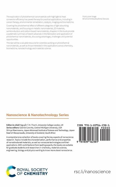The exploration of photothermal nanomaterials with high light-to-heat conversion efficiency has paved the way for practical applications, including in cancer therapy, environmental remediation, catalysis, imaging and biomedicine. Covering the photothermal effect of different categories of light-absorbing nanomaterials, and focusing on metallic nanomaterials, 2D materials, semiconductors, carbon-based nanomaterials, polymeric nanomaterials and their composites, chapters in this book provide a systematic summary of recent advances in the fabrication and application of photothermal nanomaterials, discussing advantages, challenges and potential opportunities. This text will be a valuable resource for scientists working on photothermal nanomaterials, as well as those interested in the applications across chemistry, biomedicine, nanotechnology and materials science.