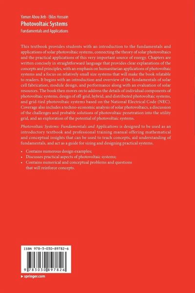 Photovoltaic Systems: Fundamentals and Applications is designed to be used as an introductory textbook and professional training manual offering mathematical and conceptual insights that can be used to teach concepts, aid understanding of fundamentals, and act as a guide for sizing and designing practical systems.