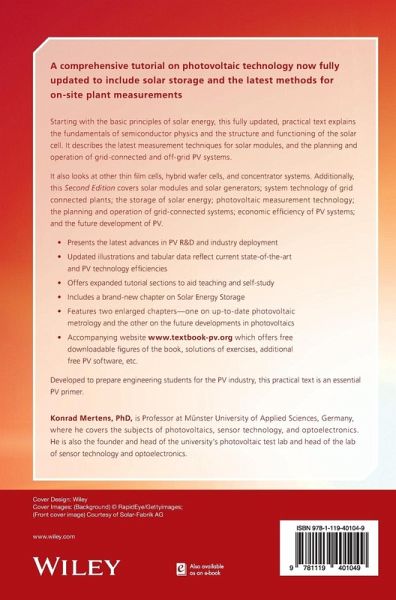 Starting with the basic principles of solar energy, this fully updated, practical text explains the fundamentals of semiconductor physics and the structure and functioning of the solar cell. It describes the latest measurement techniques for solar modules, and the planning and operation of grid-connected and off-grid PV systems.