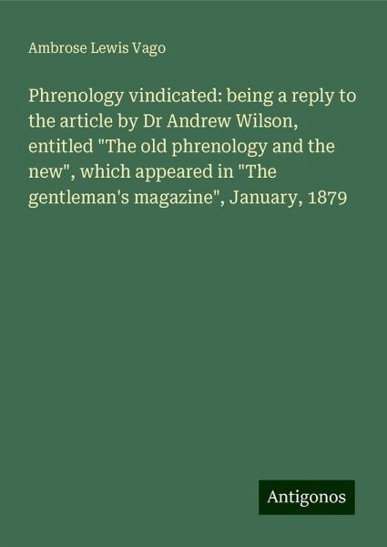 Phrenology vindicated: being a reply to the article by Dr Andrew Wilson, entitled