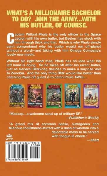 What's a millionaire bachelor to do? Join the army--with his butler! Captain Willard Phule is the only officer in the Space Legion with his own butler, but Beeker has stuck with him through thick and thin. Which is why Phule simply can't comprehend why his butler would run off-planet without a word--and taking with him Omega Company's lovely new medic. Without his right-hand man, Phule has no idea what his left hand is doing. So he takes off after his errant butler, just as General Blitzkrieg decides to make a surprise visit to Zenobia. And the only thing Blitz would like better than catching Phule off guard is to catch Phule AWOL...