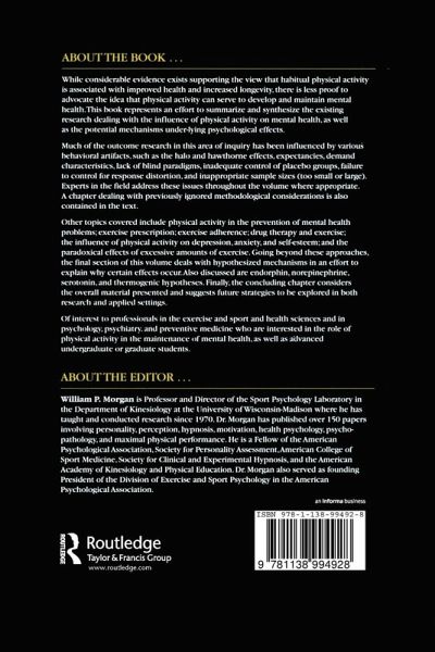 This text is an effort to summarize and synthesize the existing research dealing with the influence of physical activity on mental health, as well as the potential mechanisms underlying psychological effects. Contributions from some of the leading experts in the field deal with mental health through prevention, exercise prescription, exercise adherence, drug therapy and exercise, the influence of physical activity on depression, anxiety, and self-esteem, and the paradoxical effects of excessive amounts of exercise.