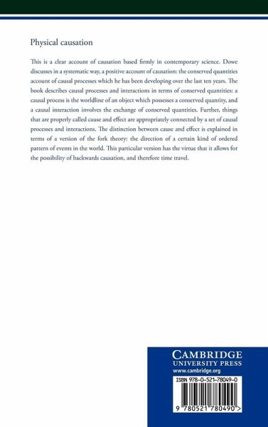 This book, published in 2000, is a clear account of causation based firmly in contemporary science. Dowe discusses in a systematic way, a positive account of causation: the conserved quantities account of causal processes which he has been developing over the last ten years. The book describes causal processes and interactions in terms of conserved quantities: a causal process is the worldline of an object which possesses a conserved quantity, and a causal interaction involves the exchange of conserved quantities. Further, things that are properly called cause and effect are appropriately connected by a set of causal processes and interactions. The distinction between cause and effect is explained in terms of a version of the fork theory: the direction of a certain kind of ordered pattern of events in the world. This particular version has the virtue that it allows for the possibility of backwards causation, and therefore time travel.