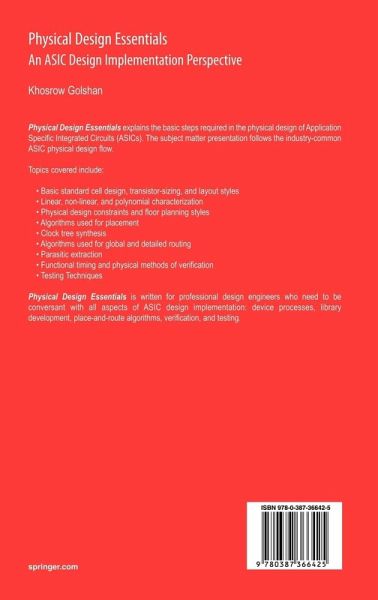 Physical Design Essentials is written for professional design engineers who need to be conversant with all aspects of ASIC design implementation: device processes, library development, place-and-route algorithms,verification, and testing.