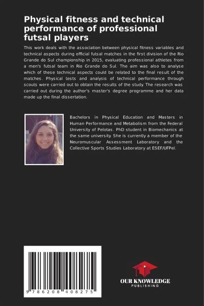 This work deals with the association between physical fitness variables and technical aspects during official futsal matches in the first division of the Rio Grande do Sul championship in 2015, evaluating professional athletes from a men's futsal team in Rio Grande do Sul. The aim was also to analyse which of these technical aspects could be related to the final result of the matches. Physical tests and analysis of technical performance through scouts were carried out to obtain the results of the study. The research was carried out during the author's master's degree programme and her data made up the final dissertation.