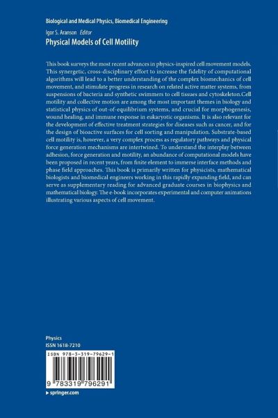 This book surveys the most recent advances in physics-inspired cell movement models. This synergetic, cross-disciplinary effort to increase the fidelity of computational algorithms will lead to a better understanding of the complex biomechanics of cell movement, and stimulate progress in research on related active matter systems, from suspensions of bacteria and synthetic swimmers to cell tissues and cytoskeleton.Cell motility and collective motion are among the most important themes in biology and statistical physics of out-of-equilibrium systems, and crucial for morphogenesis, wound healing, and immune response in eukaryotic organisms. It is also relevant for the development of effective treatment strategies for diseases such as cancer, and for the design of bioactive surfaces for cell sorting and manipulation. Substrate-based cell motility is, however, a very complex process as regulatory pathways and physical force generation mechanisms are intertwined. To understand the interplay between adhesion, force generation and motility, an abundance of computational models have been proposed in recent years, from finite element to immerse interface methods and phase field approaches.This book is primarily written for physicists, mathematical biologists and biomedical engineers working in this rapidly expanding field, and can serve as supplementary reading for advanced graduate courses in biophysics and mathematical biology. The e-book incorporates experimental and computer animations illustrating various aspects of cell movement.