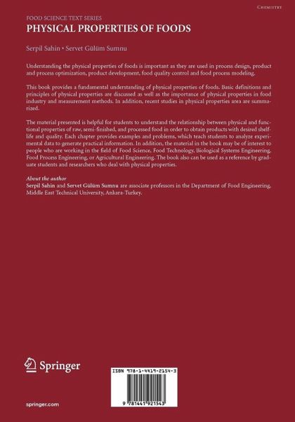 "A comprehensive and coherent treatise on most relevant physical properties of foods, Sahin and Sumnu's book presents the reader with an interesting and challenging lecture. While specifically targeting food engineers, scientists and technologists, the book can be an excellent addition to any science and engineering curricula or library. The outlay and content of each chapter make them extremely easy to read, presenting both general information and in-depth knowledge for the more technical audience. ... Throughout the book, the importance of each food property type is highlighted and explained, with detailed mathematical reasoning where appropriate. The different direct and indirect methods for determining the respective food property, coupled with several relevant examples and many practice problems at the end of each chapter, are some of the characteristics of the book that make it particularly appealing for its use as a reference or textbook in a dedicated or general FoodScience,Food Engineering or Food Technology course.
