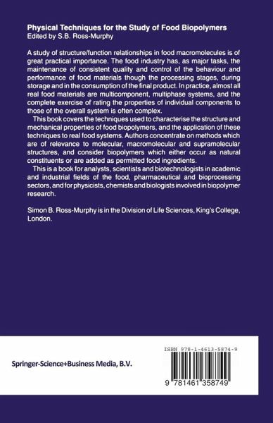 This preface is very short, not least because an introductory chapter incorporating much of the material of a conventional preface has been included and covers most of the important points in somewhat greater detail than we have scope for here. The reader should consult this as a guide to the structure of this volume, and the purpose it serves. Nevertheless, some general comments are pertinent. At a practical level, some understanding of the properties of food biopolymers is presumably historical, perhaps dating back to the invention of fire, when stone age man first discovered that heating animal carcasses increased their palatability. Indeed, one is reminded of the essay of Charles Lamb in which he claims that roast pork was first discovered by accident, when the pig-sty of an ancient Chinese village was accidentally burnt to the ground, consuming its unfortunate occupants. In the last 20 years, however, substantial scientific advances have been made in this area, by the application of ideas perhaps more common in other areas of macromolecular science to food biopolymer constituents, and this knowledge is now being applied in a non empirical manner to the development of new products. One very successful example of this approach is the work on low-fat 'healthy option' products in which understanding of the thermodynamics, interactions, structure and rheology of mixed protein-polysaccharide gelling systems is being employed. The present volume describes the application of modern macro molecular techniques to the characterisation of food biopolymers.