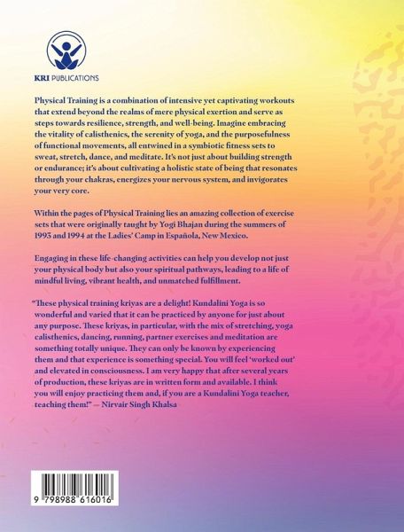 Physical Training is a combination of intensive yet captivating workouts that extend beyond the realms of mere physical exertion and serve as steps towards resilience, strength, and wellbeing. Imagine embracing the vitality of calisthenics, the serenity of yoga, and the purposefulness of functional movements, all entwined in a symbiotic fitness sets to sweat, stretch, dance, and meditate. It's not just about building strength or endurance; it's about cultivating a holistic state of being that resonates through your chakras, energizes your nervous system, and invigorates your very core. Within the pages of Physical Training lies an amazing collection of exercise sets that were originally taught by Yogi Bhajan during the summers of 1993 and 1994 at the Ladies' Camp in Española, New Mexico. Engaging in these life-changing activities can help you develop not just your physical body but also your spiritual pathways, leading to a life of mindful living, vibrant health, and unmatched fulfillment. The teachings of Physical Training are a profound testament to the harmony between body, mind, and soul. As you partake in these transformative exercises, you will not only sculpt your physique but also nurture the pathways of your soul, guiding you towards a life of conscious living, vibrant health, and unparalleled fulfillment. Through dedicated practice, you can safeguard your well-being and seize the keys to excellence, ensuring that the passage of time enhances your vitality rather than diminishes it. Step into the realm of Physical Training, where sweating and meditation intertwine, and where strength becomes a reflection of spiritual resilience.