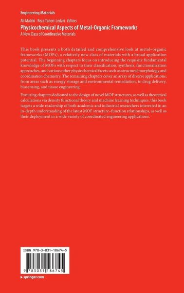This book presents a both detailed and comprehensive look at metal-organic frameworks (MOFs), a relatively new class of materials with a broad application potential. The beginning chapters focus on introducing the requisite fundamental knowledge of MOFs with respect to their classification, synthesis, functionalization approaches, and various other physiochemical facets such as structural morphology and coordination chemistry. The remaining chapters cover an array of diverse applications, from areas such as energy storage and environmental remediation, to drug delivery, biosensing, and tissue engineering. Featuring chapters dedicated to the design of novel MOF structures, as well as theoretical calculations via density functional theory and machine learning techniques, this book targets a wide readership of both academic and industrial researchers interested in an in-depth understanding of the latest MOF structure-function relationships, as well as their deployment in a wide variety of coordinated engineering applications.