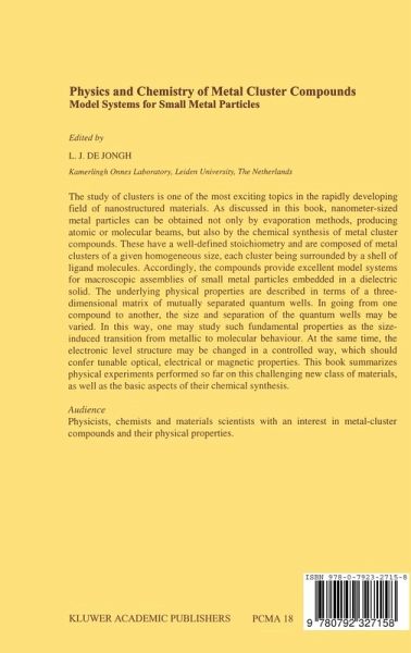 1. Introduction to Metal Cluster Compounds: From Molecule to Metal!.- 1.1. The impact of cluster-science.- 1.2. Structural characteristics of metal clusters.- 1.3. Electronic energy-level structures.- 1.4. Brief introduction to the physical properties of metal cluster compounds.- 1.5. Conductivity studies.- 1.6. Application of the Anderson-Hubbard approach.- References.- 2. High-Nuclearity Carbonyl Metal Clusters.- 2.1. Introduction.- 2.2. Synthesis and reactivity.- 2.3. Structural aspects.- 2.4. Electron counting for clusters.- References.- 3. Ligand-Stabilized Giant Metal Clusters and Colloids.- 3.1. Strategy for making giant metal clusters.- 3.2. Synthetic and structural examples.- 3.3. Chemical properties.- 3.4. Catalysis.- 3.5. Outlook.- References.- 4. Theory of Electronic Properties of Metal Clusters and Particles.- 4.1. Why are metal particles interesting?.- 4.2. Model Hamiltonians.- 4.3. Traditional quantum chemical methods.- 4.4. Density functional approaches.- 4.5. Summary.- References.- 5. X-Ray Photoelectron Spectroscopy Applied to Pure and Supported Molecular Clusters.- 5.1. Introduction.- 5.2. Generalities of photoemission spectroscopy applied to pure and supported molecular metal clusters.- 5.3. XPS of molecular clusters.- 5.4. XPS of supported molecular clusters.- 5.5. Outlook for the future.- References.- 6. Application of Mössbauer Effect Spectroscopy to Cluster Research.- 6.1. Introduction.- 6.2. Mössbauer Effect Spectroscopy (MES).- 6.3. Our Mössbauer results.- 6.4. 197Au MES on platinum clusters.- 6.5. Conclusions.- References.- 7. Specific Heat Studies on Metal Cluster Compounds.- 7.1. Introduction.- 7.2. The lattice specific heat.- 7.3. The electronic specific heat.- 7.4. Data and discussion.- 7.5. Summary.- References.- 8. NMR in SubmicronParticles.- 8.1. Introduction.- 8.2. Surface and quantum size effects.- 8.3. ESR and NMR - Theory.- 8.4. Naked clusters - Experiment and discussion.- 8.5. Aggregates of metal cluster compounds - Experiment and discussion.- 8.6. Summary.- References.- 9. Magnetic Properties and UV-Visible Spectroscopic Studies of Metal Cluster Compounds.- 9.1. Introduction.- 9.2. Magnetic properties.- 9.3. Electronic (UV-visible-NMR) spectra.- 9.4. Conclusion.- Acknowledgements.- References.- 10. Magnetic Properties of Metal Cluster Compounds.- 10.1. Introduction.- 10.2. Magnetic properties of atoms, metals and clusters.- 10.3. Experiments on metal cluster compounds.- References.- Index of Chemical Compounds.- Index of Subjects.