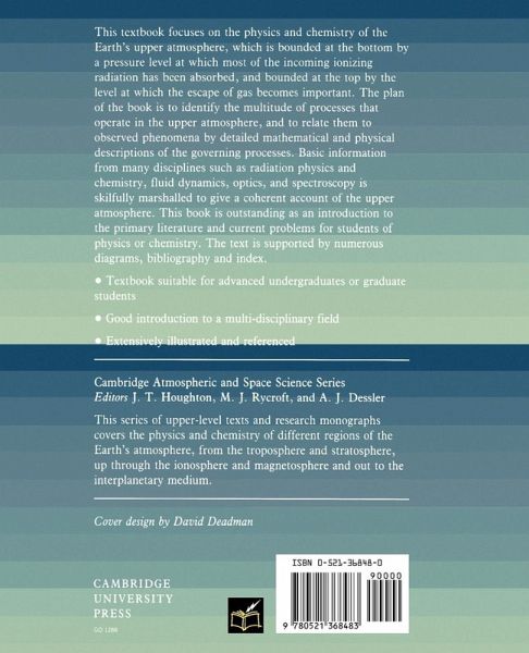 This textbook focuses on the physics and chemistry of the Earth's upper atmosphere, which is bounded at the bottom by a pressure level at which most of the incoming ionizing radiation has been absorbed, and bounded at the top by the level at which the escape of gas becomes important. The plan of the book is to identify the multitude of processes that operate in the upper atmosphere, and to relate them to observed phenomena by detailed mathematical and physical descriptions of the governing processes. Basic information from many disciplines such as radiation physics and chemistry, fluid dynamics, optics, and spectroscopy is skillfully marshalled to give a coherent account of the upper atmosphere. This book is outstanding as an introduction to the primary literature and current problems for students of.