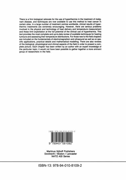 In the 1960s a firm rationale was developed for using raised temperatures to treat malignant disease and there has been a continuous expansion of the field ever since. However, a major limitation exists in our ability to heat human tumours, especially those sited deep in the body, with a reasonable degree of temperature uniformity. This problem has resulted in engineers and physicists collaborating closely with biologists and clinicians towards the common goal of developing and testing the clinical potential of this exciting treatment modality. The aim of the physicist and engineer is to develop acceptible methods of heating tumQur masses in as many sites as possible to therapeutic temperatures avoiding excessive heating of normal structures and, at the same time, obtaining the temperature distribution throughout the heated volume. The problem is magnified by both the theoretical and technical limitations of heating methods and devices. Moreover, the modelling of external deposition of energy in tissue and knowledge of tissue perfusion are ill-defined. To this must be added the conceptual difficulty of defining a thermal dose. The NATO course was designed to provide a basis for the integration of physics and technology relevant to the development of hyperthermia. There were 48 lectures covering the theoretical and practical aspects of system design and assessment, including, as far as possible, all the techniques of current interest and importance in the field.