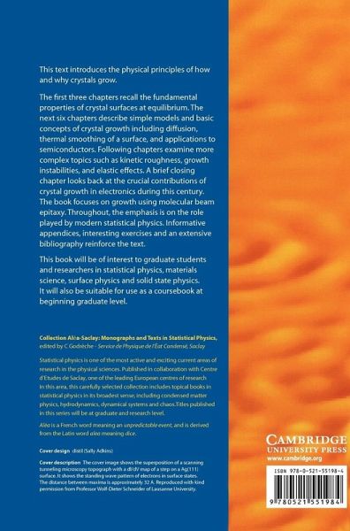Preface List of symbols 1. Morphology of a crystal surface 2. Surface free energy, step free energy, and chemical potential 3. The equilibrium crystal shape 4. Growth and dissolution crystal shapes: Frank's model 5. Crystal growth: the abc 6. Growth and evaporation of a stepped surface 7. Diffusion 8. Thermal smoothing of a surface 9. Silicon and other semiconducting materials 10. Growth instabilities of a planar front 11. Nucleation and the adatom diffusion length 12. Growth roughness at long lengthscales in the linear approximation 13. The Kardar-Parisi-Zhang equation 14. Growth without evaporation 15. Elastic interactions between defects on a crystal surface 16. General equations of an elastic solid 17. Technology, crystal growth and surface science Appendices References Index.
